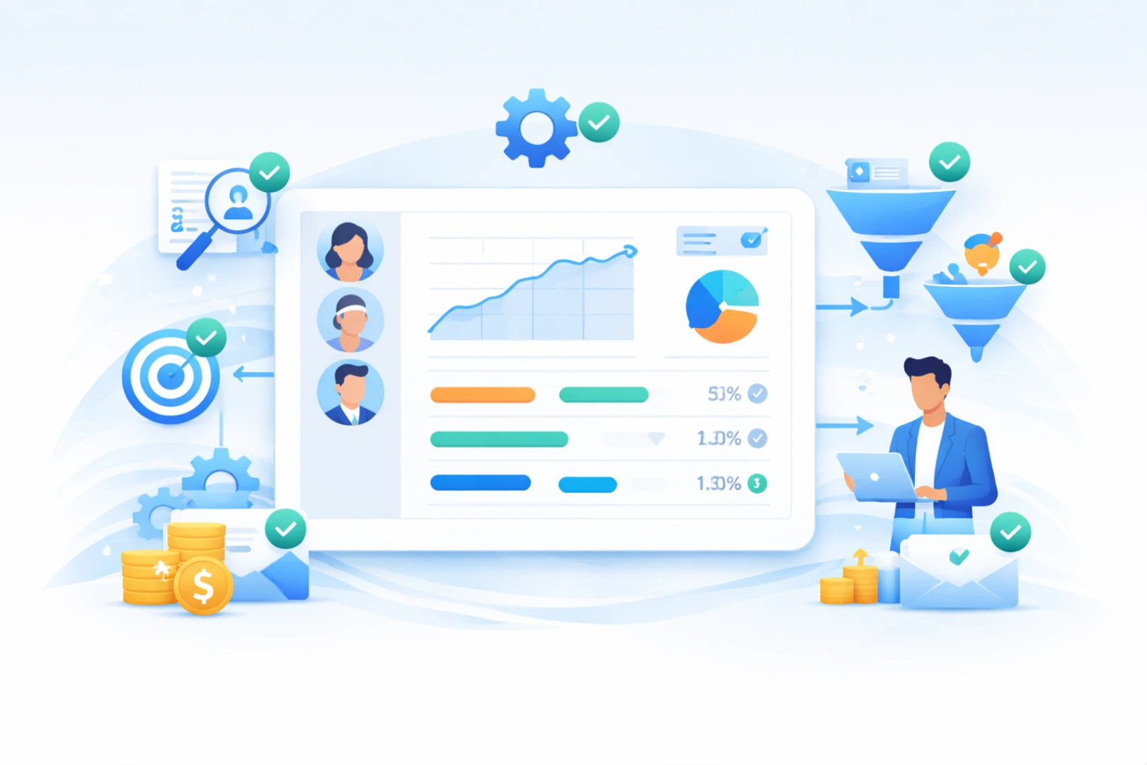 Track CPL, ROI, and lead stages live inside your dashboard.